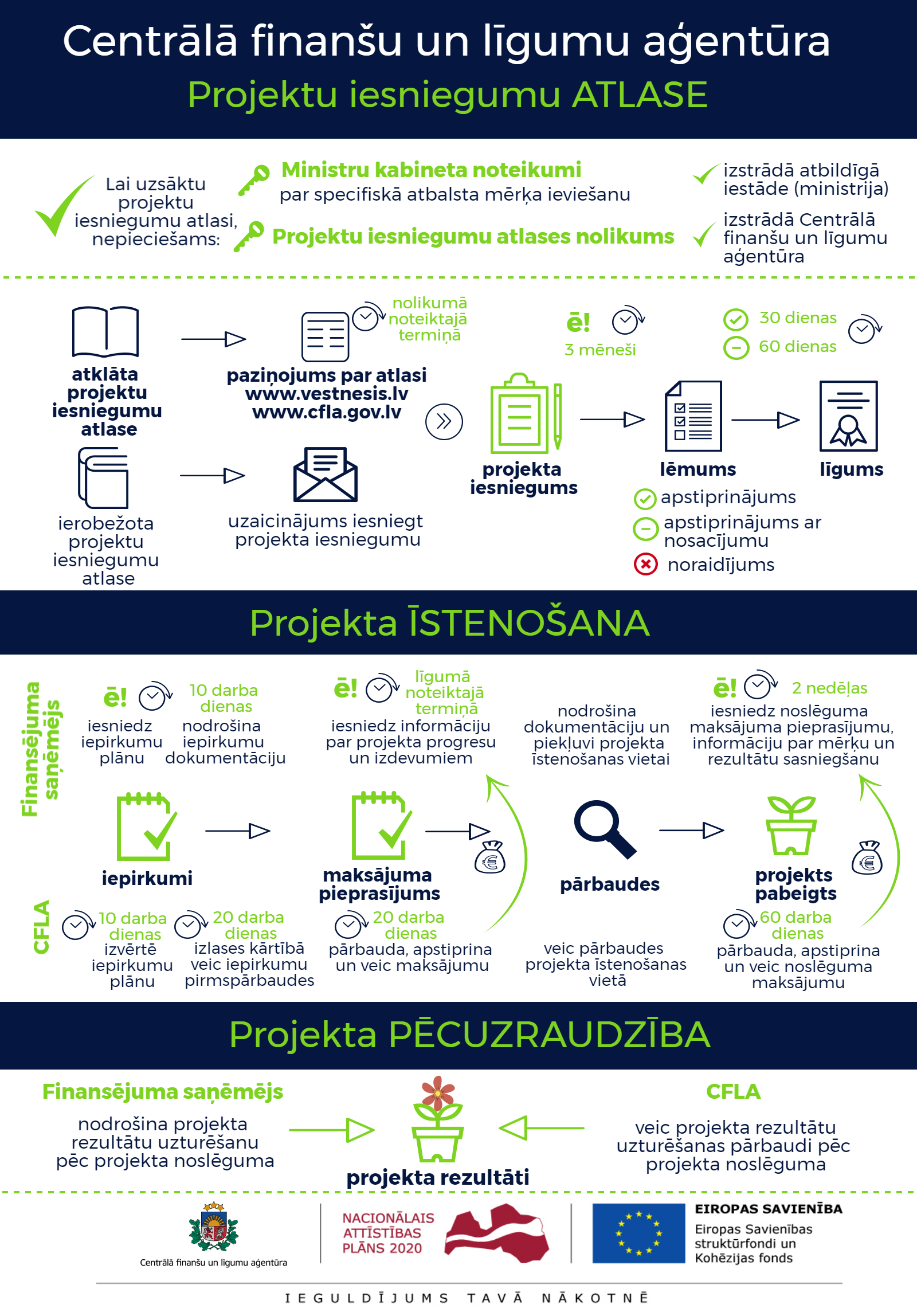 Informācija par projektu atlases un īstenošanas procesu infografikā šeit.